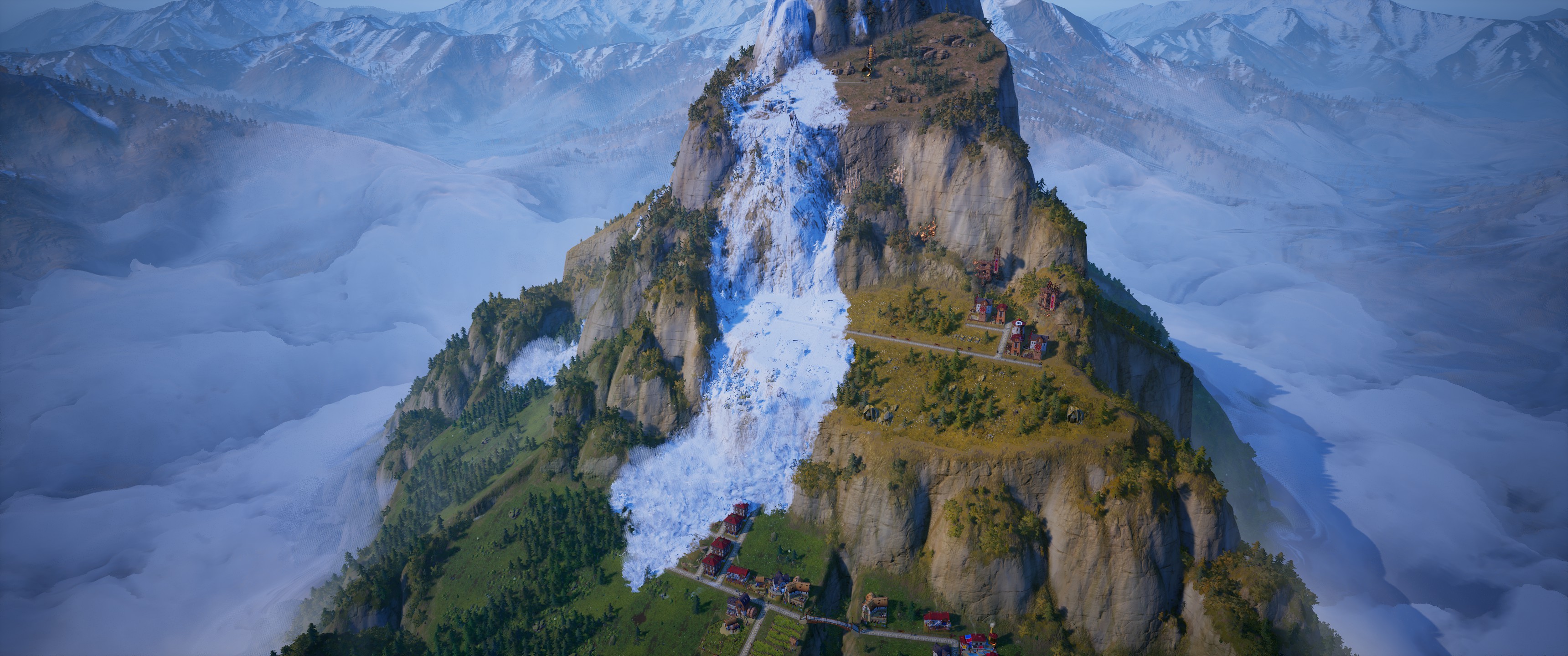 A city-builder where you’re constructing your towns on a mountaintop. The demo introduces the basic production chains and shows off an avalanche. Seems like it’s more about building the most efficient production chains than about resource management.