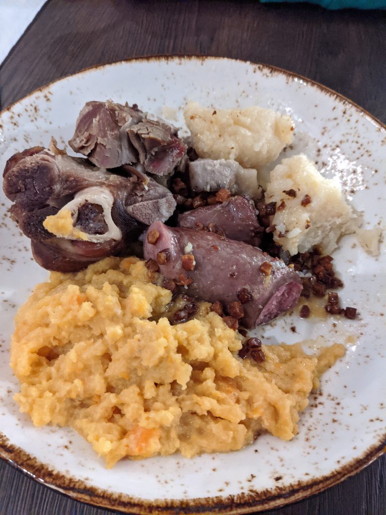 The tree was divided into three sections using gold ribbon. If you rolled “stocking”, you got to take one stocking from your section of the tree. The stockings had gifts like gift cards or lottery tickets (something my parents did to fill out the stockings – lottery tickets are an unusual gift for us).