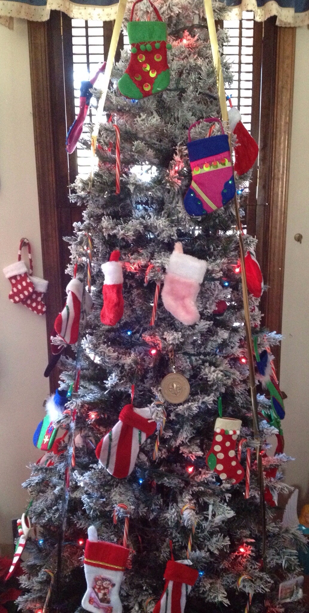 The tree was divided into three sections using gold ribbon. If you rolled “stocking”, you got to take one stocking from your section of the tree. The stockings had gifts like gift cards or lottery tickets (something my parents did to fill out the stockings – lottery tickets are an unusual gift for us).